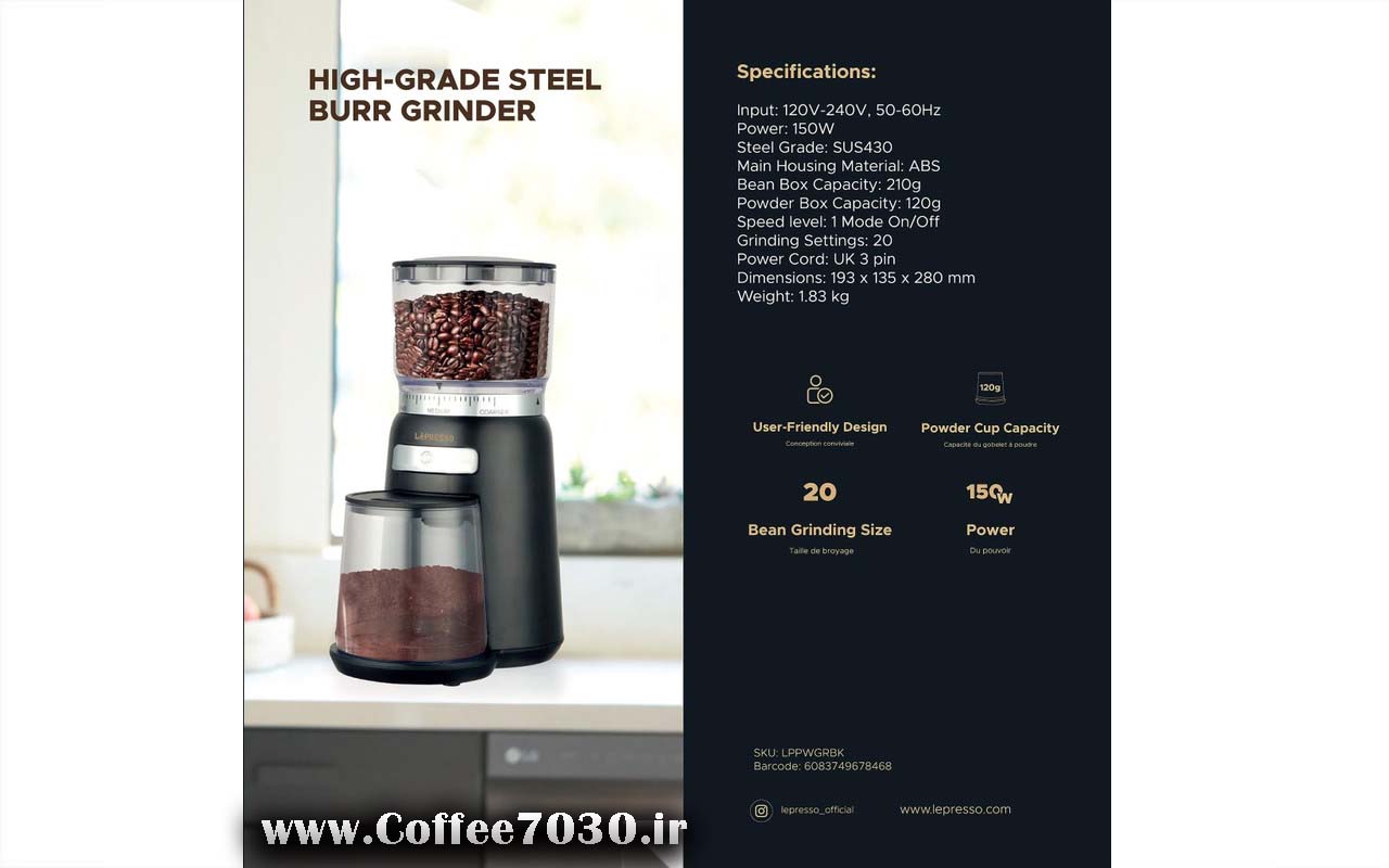 بررسی نکات آسیاب دستگاه lepresso high performance coffee bean grinder مدل LPPWGRBK
